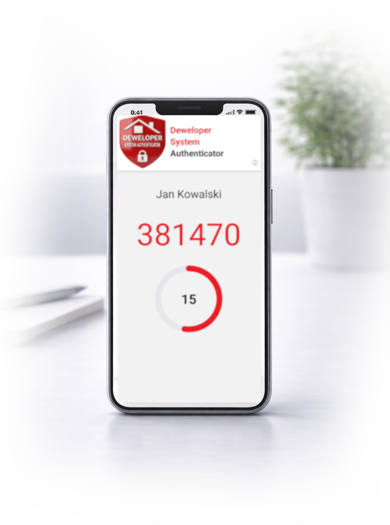 za pomocą aplikacji DEWELOPER System Authenticator. Wygenerowany token trzeba użyć w ciągu 30 sekund, potem traci swoją ważność.
